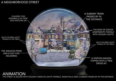 Amazon purchased the old Lord & Taylor building on 5th Avenue in NYC and wanted to magically activate their windows for the holidays. I was hired by my friends at Livesight Creative to conceptualize, illustrate and art direct 8 distinctly New York holiday vignettes that came to life through giant magical snow globes.